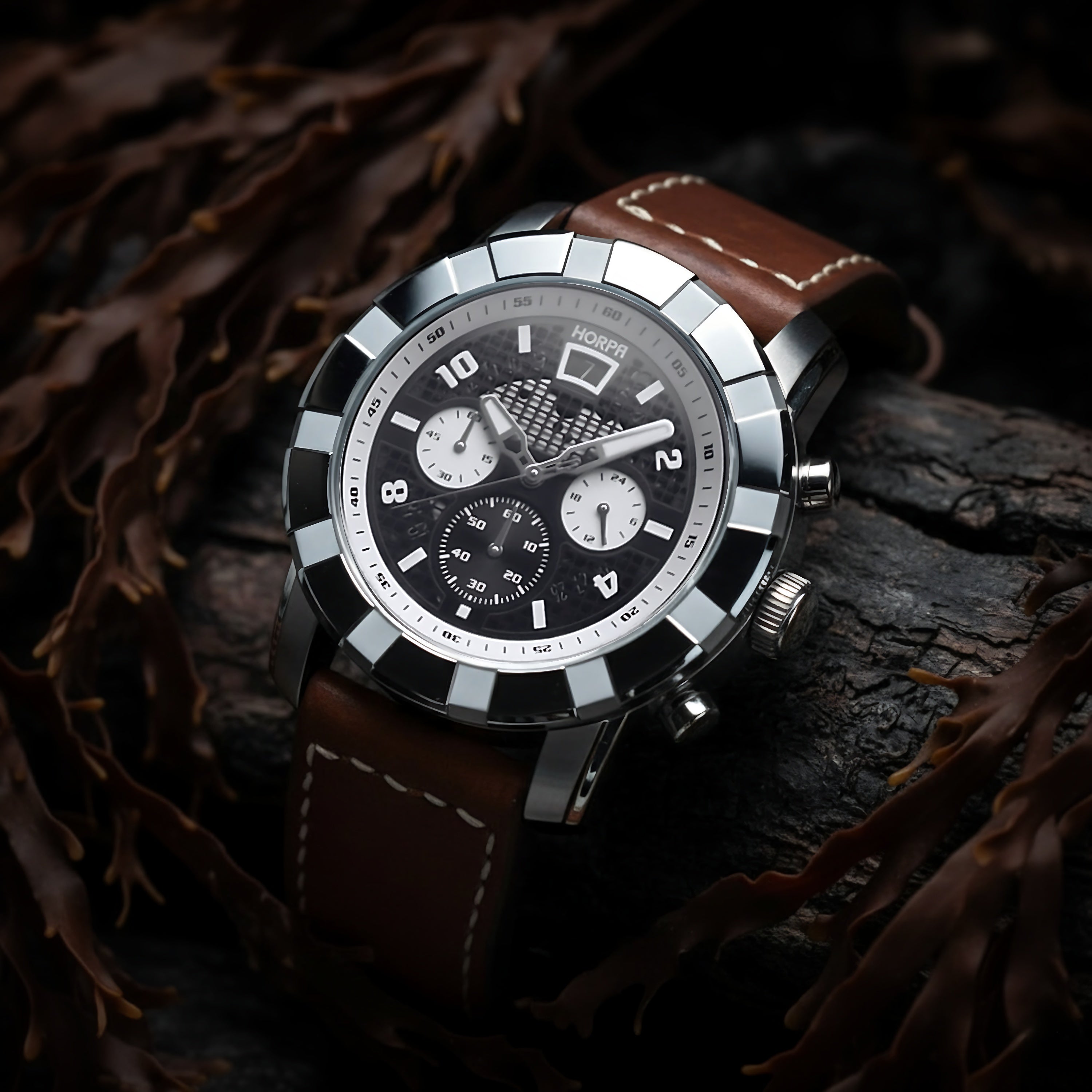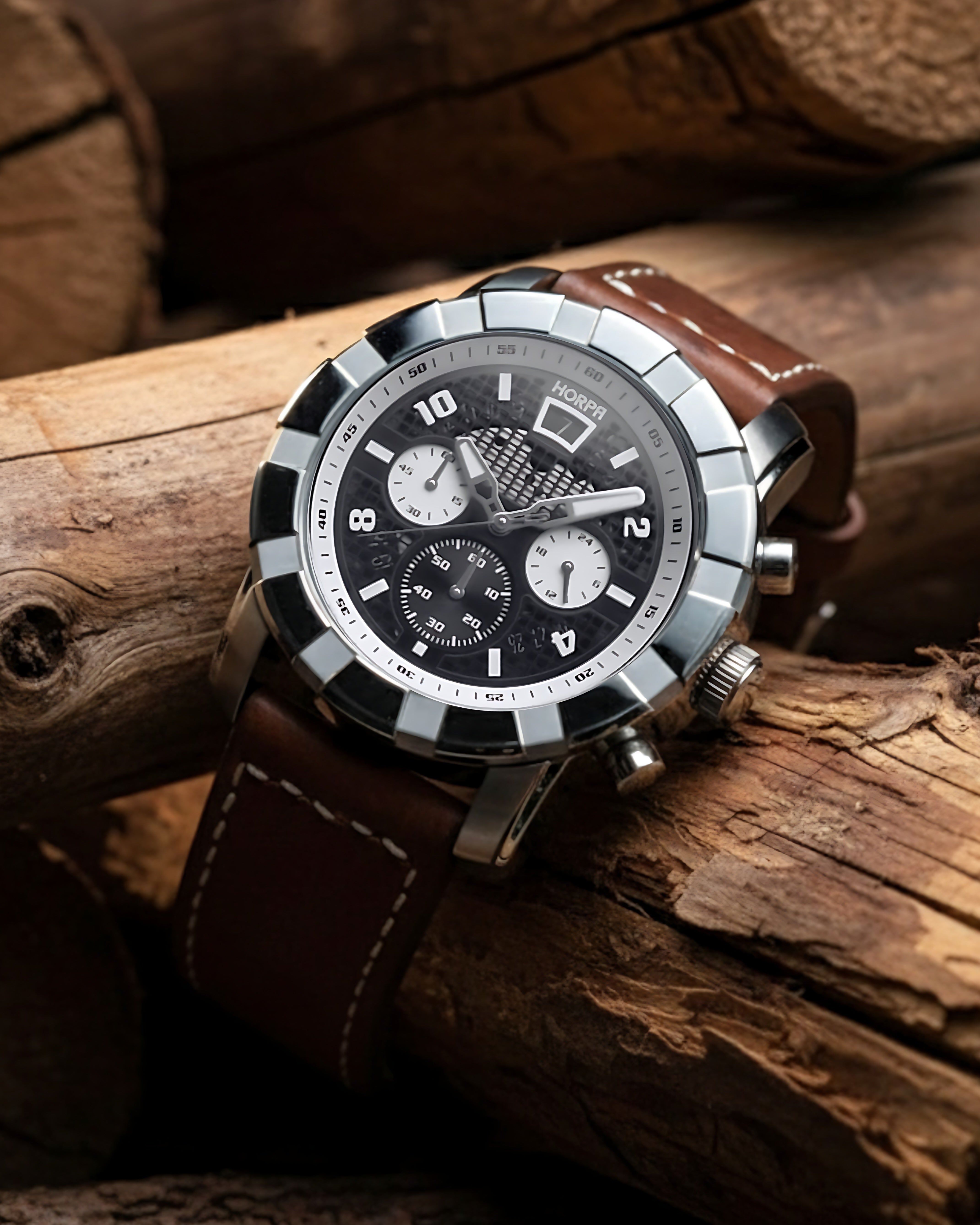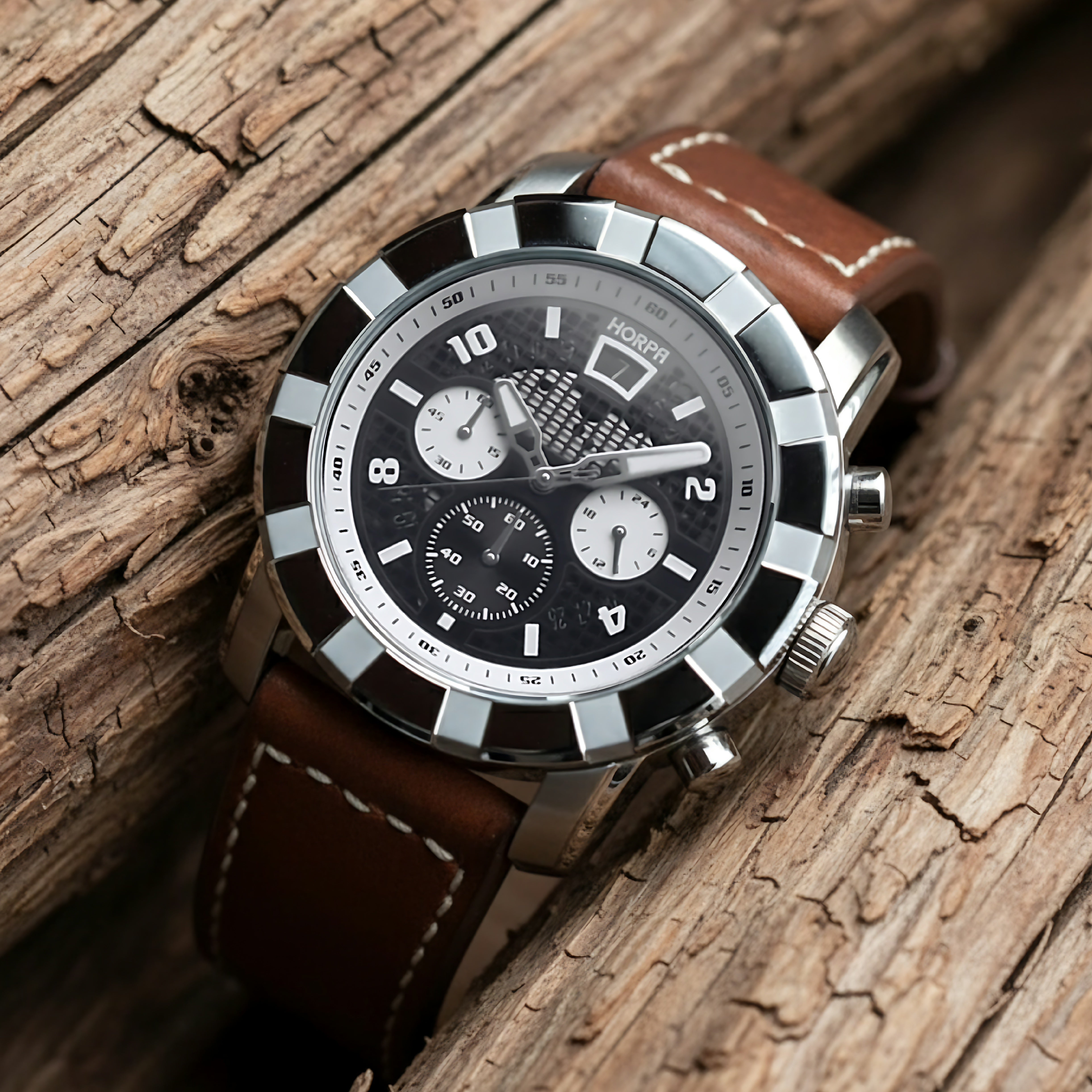 Forged where rugged charm meets timeless elegance, the Horpa C1 "Safari" is your ultimate men's chronograph. It's a sophisticated fusion of audacity, adaptability, and unwavering utility, engineered to elevate every journey.